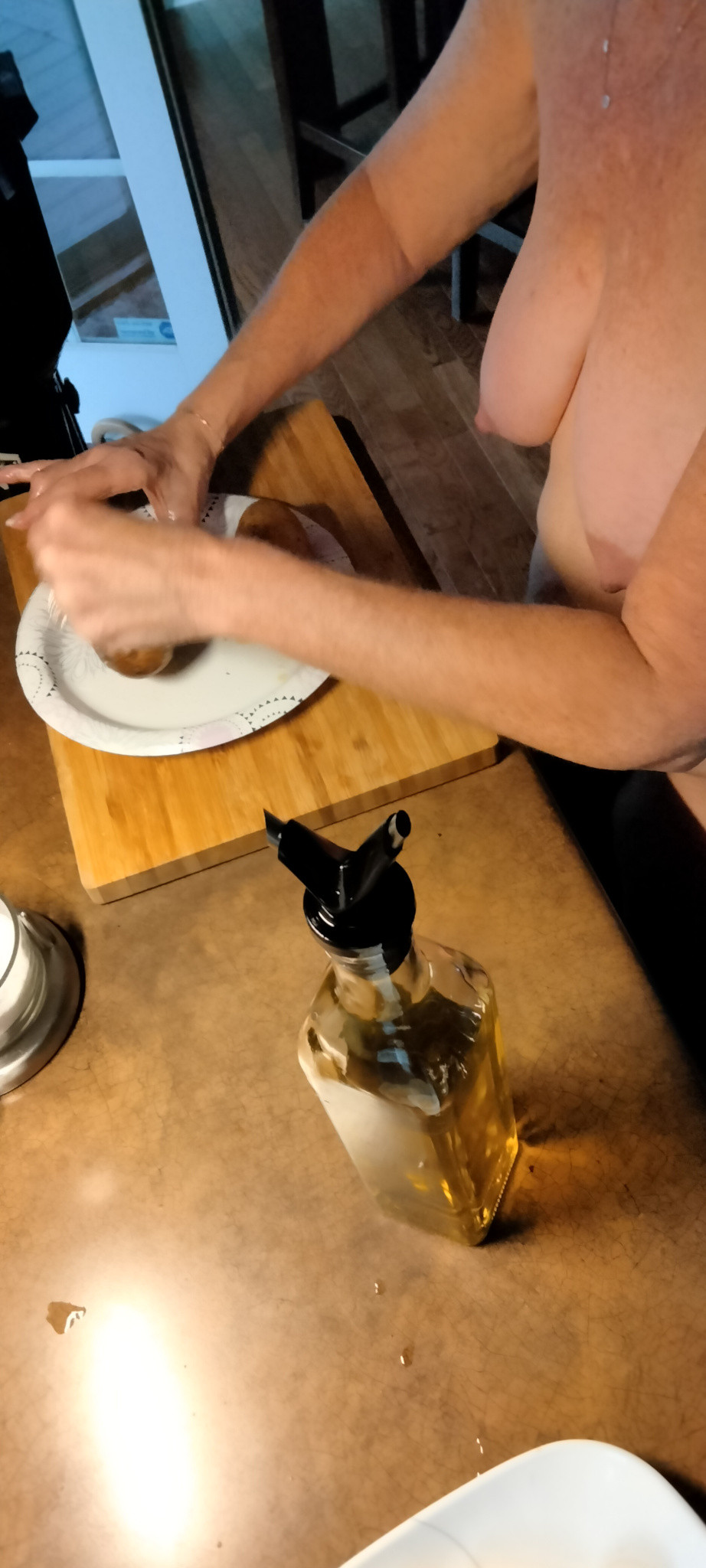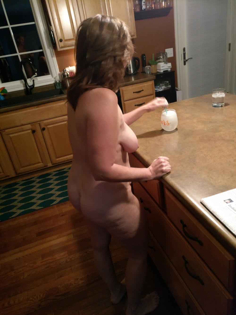 Korin enjoys being nude while at home. If we don't have company over she will just walk around nude. She enjoys doing household chores in her birthday suit in addition to just lounging and relaxing. She also enjoys being naked outdoors on our deck and I am sure that the neighbors enjoy her being naked on our deck!